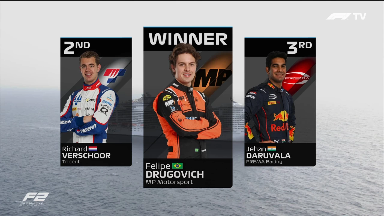 Após todos pararem e as posições serem restabelecidas, Drugovich manteve a ponta da prova com uma vantagem de pouco mais de 2 segundos para o vice-líder. Com isso Felipe Drugovich apenas teve que administrar e levar o carro com tranquilidade para a vitória. O segundo colocado foi Verschoor com Daruvala fechando o pódio.